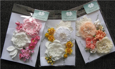 Here is a bit of an overview of the Green Tara order we got in this morning.You can see some of the lovely NEW Fabric flowers & at just $1.95 each they are a bargain. You can buy them loose or in a "Concept pack".